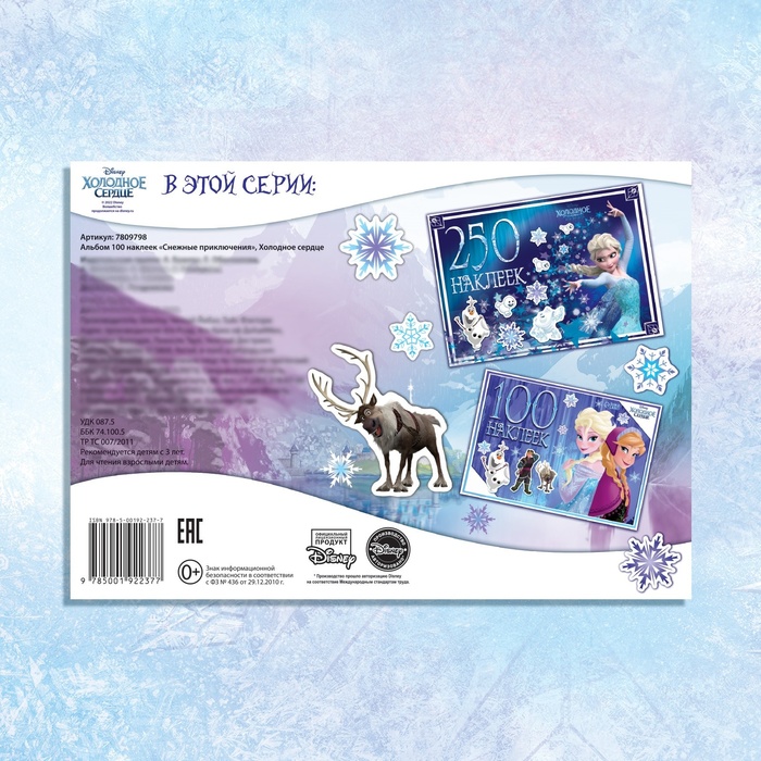 - 100 красочных наклеек с изображениями Эльзы, Анны, Олафа и других любимых персонажей.
