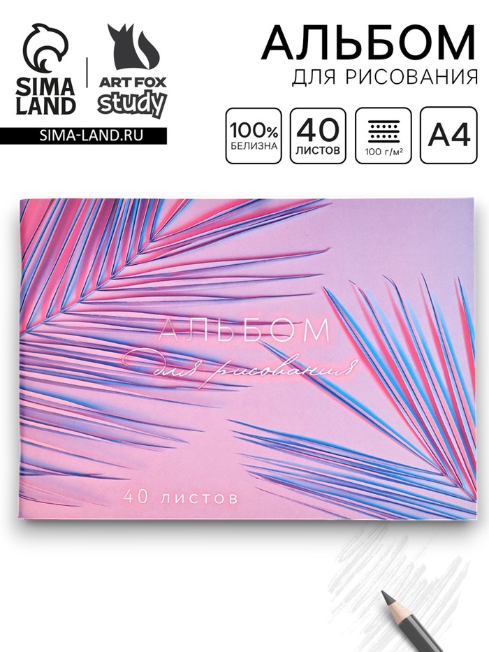 Альбом для рисования 40 листов А4 на скрепке «Листья» обложка 160 г/м², бумага 100 г/м².