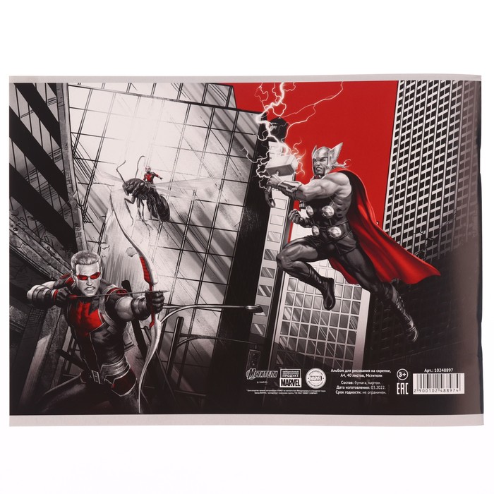 Альбом для рисования А4, 40 листов, на скрепке, с обложкой «Мстители» — идеален для юных супергероев! Плотная бумага подходит для карандашей, фломастеров и красок. Динамичный дизайн с любимыми персонажами вдохновляет на приключения. Удобен в использовании, прочен, подходит для школы и дома. Пусть каждый рисунок станет частью эпичной битвы за добро и творческое вдохновение!