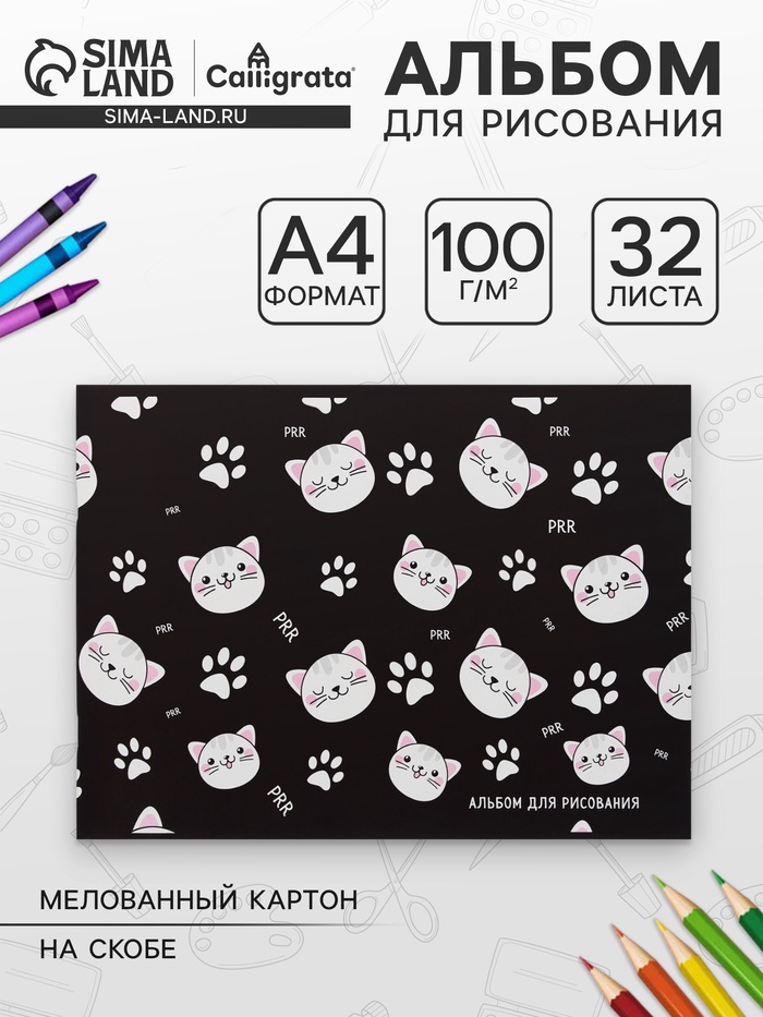Альбом для рисования Calligrata «Котики» А4, 32 листа на скрепке, обложка мелованный картон, внутренний блок офсет 100 г/м²