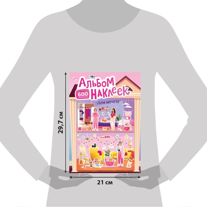 С этим альбомом ребёнок увлекательно проведёт время. Малыш найдёт множество красочных наклеек с разнообразной мебелью и предметами декора, с помощью которых можно создать комнату мечты. А также 15 разворотов, куда можно разместить наклейки.