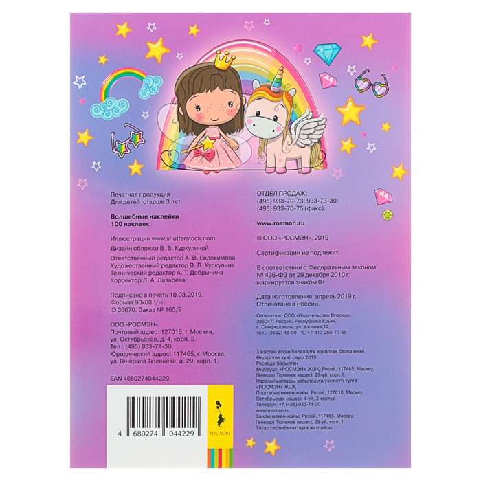 На 8 страницах собраны самые волшебные наклейки с изображениями сказочных животных, милых героев и других очаровательных мотивов. Каждая наклейка создана для того, чтобы вдохновлять ребёнка на творческие эксперименты. Благодаря универсальной тематике, эти стикеры подойдут для любого случая: будь то оформление дневника, создание открыток или подготовка к празднику, например, 8 Марта.