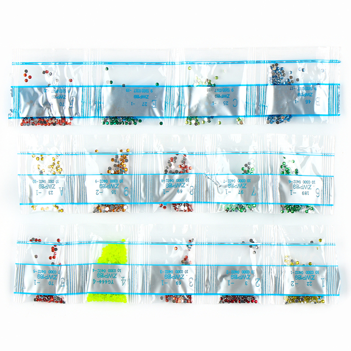 • Разложите кристаллики с помощью карандаша по указанной схеме, заполнив полотно. На картине уже обозначены необходимые оттенки. Холст с клеевым покрытием будет надёжно удерживать стразы.