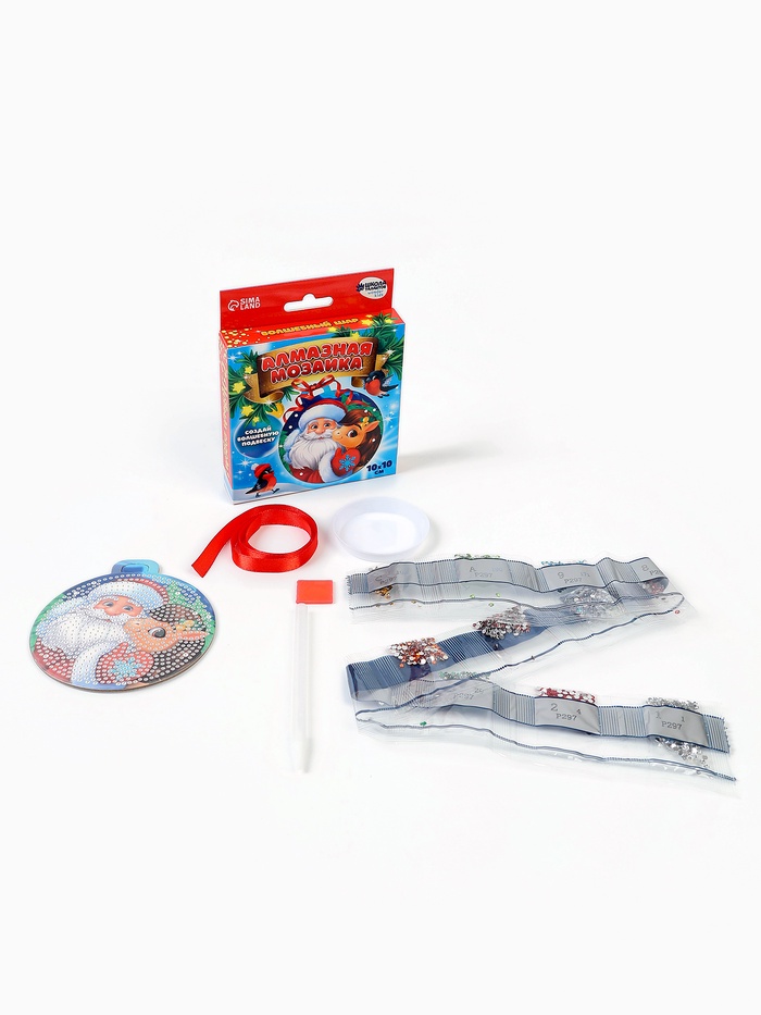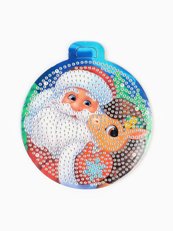 Алмазная мозаика на круглой подвеске 10×10 «Дед Мороз и Лошадка»