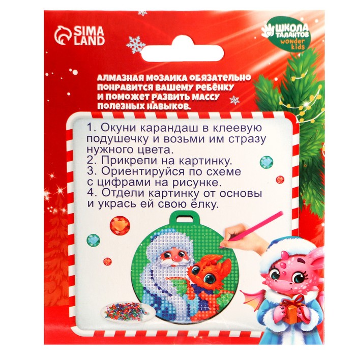 Алмазная мозаика на новый год с частичным заполнением для детей на подвеске «Дед Мороз с Драконом», набор для творчества
