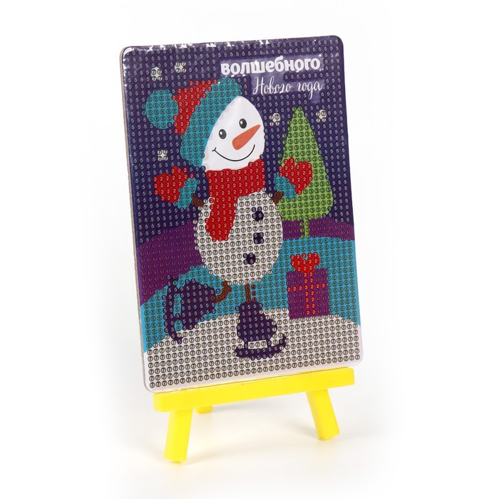 Алмазная мозаика на новый год с частичным заполнением для детей «Снеговик», 10×15 см, набор для творчества