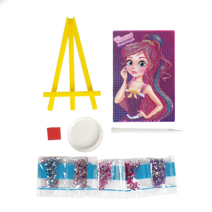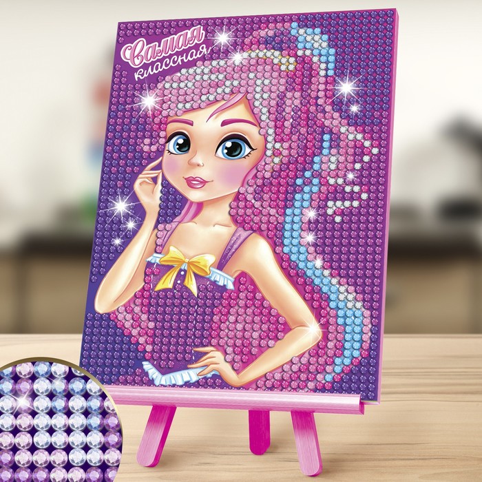 В наборе есть небольшой мольберт: с ним готовое творение можно расположить на полке или столе без дополнительных креплений. В таком интересном оформлении сверкающая картина будет выглядеть как предмет искусства.