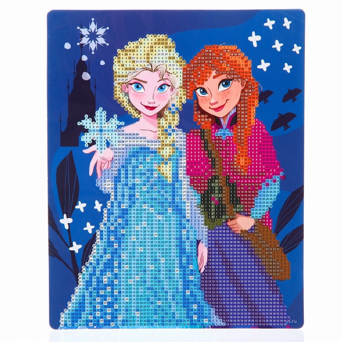 Ребёнку предстоит разложить кристаллики карандашом по пронумерованной схеме, заполнив всё полотно. Основа с клеевым покрытием будет надёжно удерживать стразы. На ней уже обозначены необходимые оттенки, а цветовая таблица расположена на упаковке.