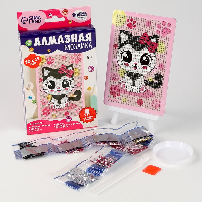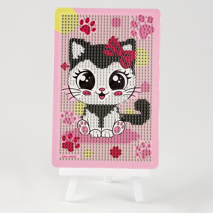 Алмазная мозаика с частичным заполнением на подставке для детей «Милая кошечка», 10 х 15 см, набор для творчества