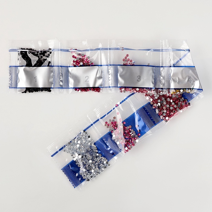 Ребёнку предстоит разложить кристаллики карандашом по пронумерованной схеме, заполнив всё полотно. Основа с клеевым покрытием будет надёжно удерживать стразы. На ней уже обозначены необходимые оттенки.