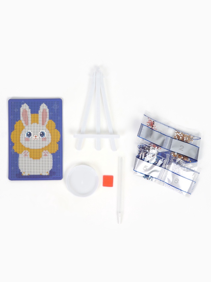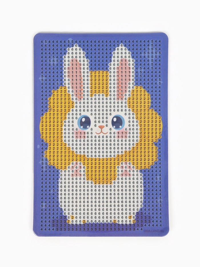 Ребёнку предстоит разложить кристаллики карандашом по пронумерованной схеме, заполнив всё полотно. Основа с клеевым покрытием будет надёжно удерживать стразы. На ней уже обозначены необходимые оттенки.