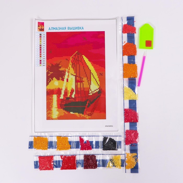 Разложите кристаллики с помощью специального карандаша по указанной схеме, заполните всё полотно. Тканевая основа с точечным клеевым покрытием будет надёжно удерживать стразы. На картине уже обозначены необходимые оттенки. Отдельно вас порадует то, что все цвета схемы расположены рядом с рабочей областью холста. А это значит, что схема всегда будет под рукой!