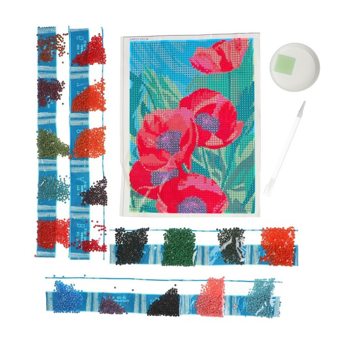 Разложите кристаллики с помощью карандаша по указанной схеме, заполнив полотно. На картине уже обозначены необходимые оттенки. Холст с клеевым покрытием будет надёжно удерживать стразы.