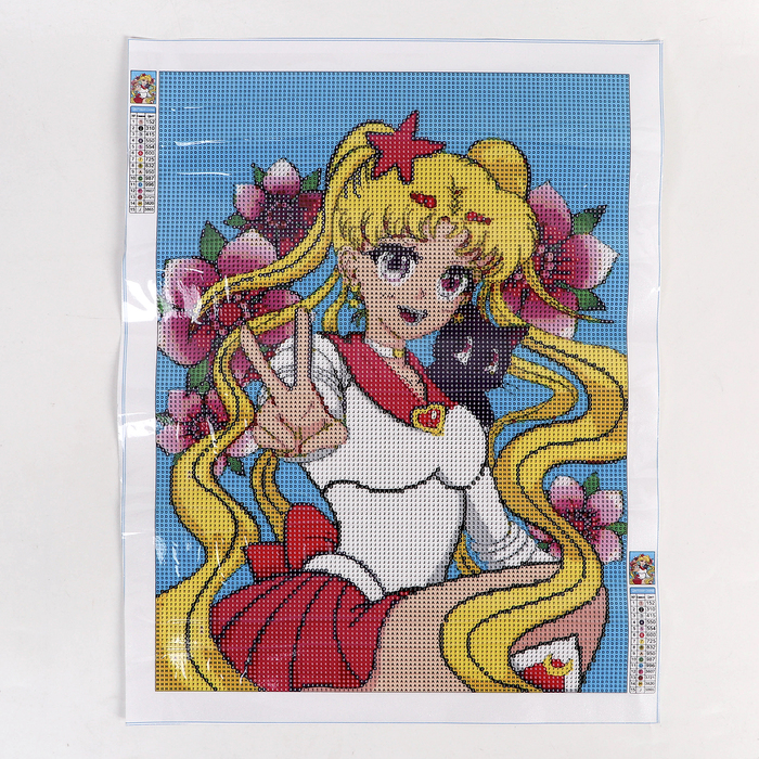 Вам предстоит разложить кристаллики карандашом по пронумерованной схеме. Холст с клеевым покрытием будет надёжно удерживать стразы.