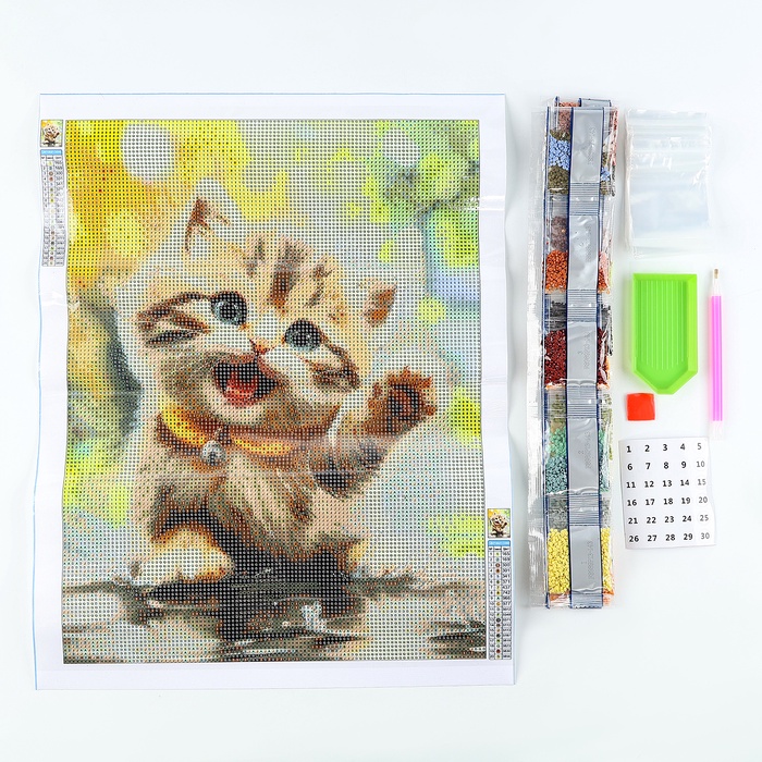 Вам предстоит разложить кристаллики карандашом по пронумерованной схеме. Холст с клеевым покрытием будет надёжно удерживать стразы.