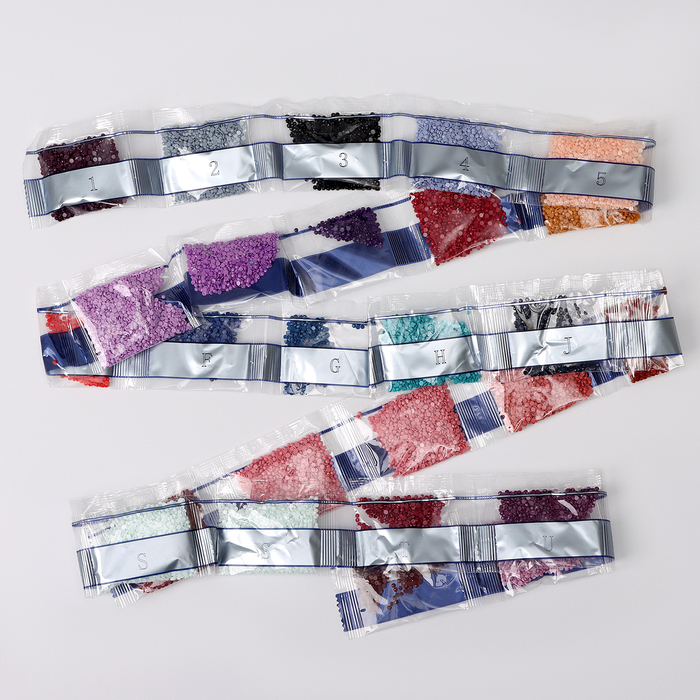 Вам предстоит разложить кристаллики карандашом по пронумерованной схеме. Холст с клеевым покрытием будет надёжно удерживать стразы.