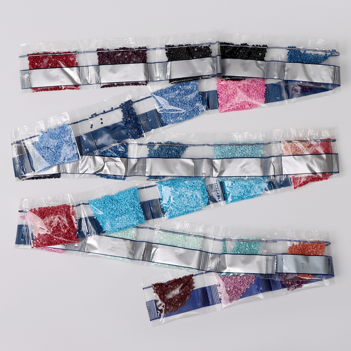Вам предстоит разложить кристаллики карандашом по пронумерованной схеме. Холст с клеевым покрытием будет надёжно удерживать стразы.