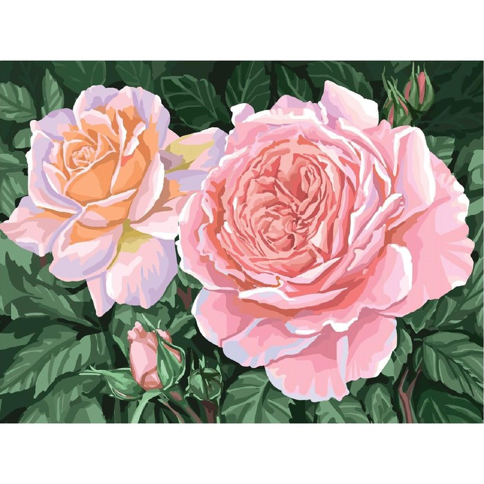 Алмазная мозаика с полным заполнением «Розы на кусте» 15х21 см, на холсте