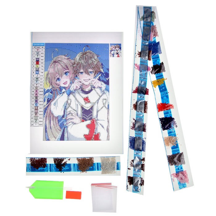 Разложите кристаллики с помощью карандаша по указанной схеме, заполнив всё полотно. На картине уже обозначены необходимые оттенки. Холст с клеевым покрытием будет надёжно удерживать стразы.