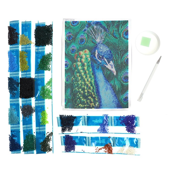 Разложите кристаллики с помощью карандаша по указанной схеме, заполнив полотно. На картине уже обозначены необходимые оттенки. Холст с клеевым покрытием будет надёжно удерживать стразы.
