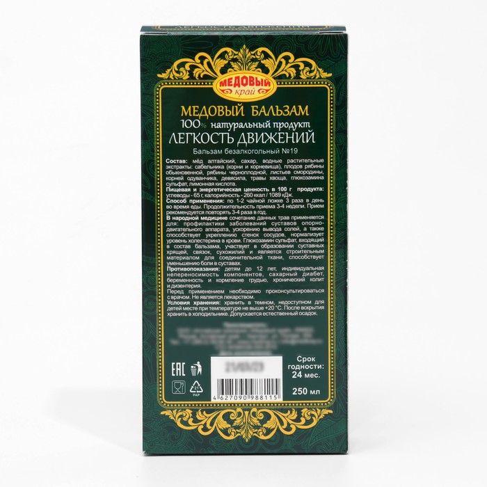 Алтайский медовый бальзам "Легкость движения" - это натуральное средство, разработанное для облегчения дискомфорта в мышцах и суставах, а также для улучшения подвижности. Бальзам содержит ценные ингредиенты, включая мед и растительные экстракты, которые обладают смягчающими и расслабляющими свойствами.