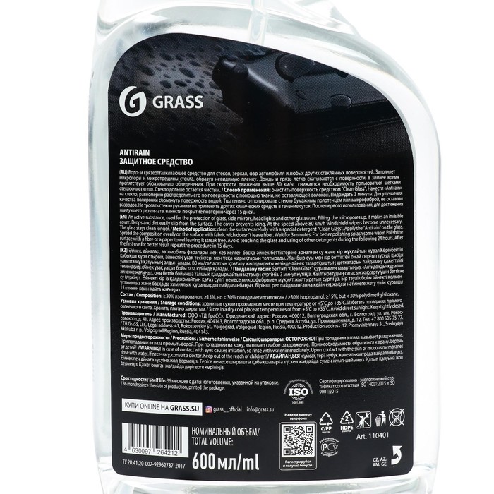 Водо и грязеотталкивающее средство для стекол, зеркал, фар автомобиля и любых других стеклянных поверхностей. Заполняет микропоры и микротрещины стекла, образуя невидимую пленку. Дождь и грязь легко скатываются с поверхности, в зимнее время препятствует образованию обледенения. При скорости движения выше 80 км/ч снижается необходимость пользоваться щетками стеклоочистителя. Стекло дольше остается чистым.