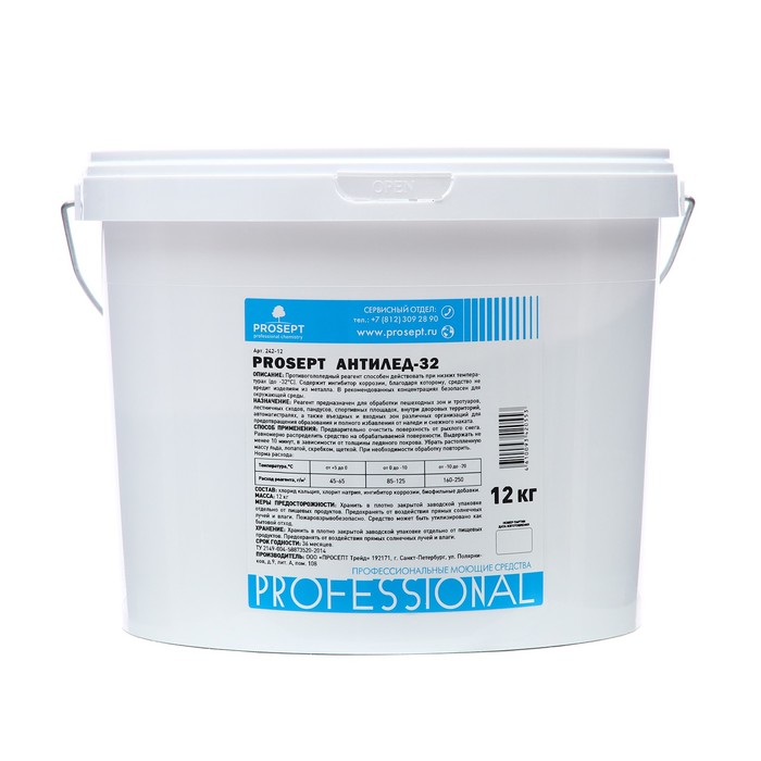 Антигололед PROSEPT 32 – это готовый состав в упаковке весом 12 килограмм, предназначенный для борьбы с образованием гололеда на различных поверхностях. Он обеспечивает превосходное сцепление и устойчивость на скользких поверхностях, предотвращая возможные падения и травмы.