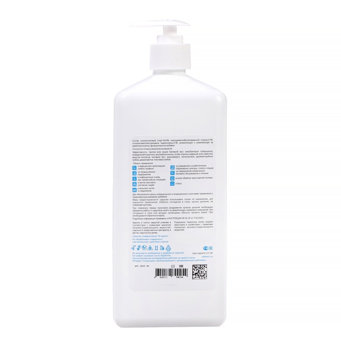 Состав: спирт изопропиловый - 60%, 2-феноксиэтанол - 1%, 2,4,4-трихлоро-2-гидроксидифенил эфир - 0,25%, увлажняющие и ухаживающие за кожей компоненты и другие функциональные добавки.