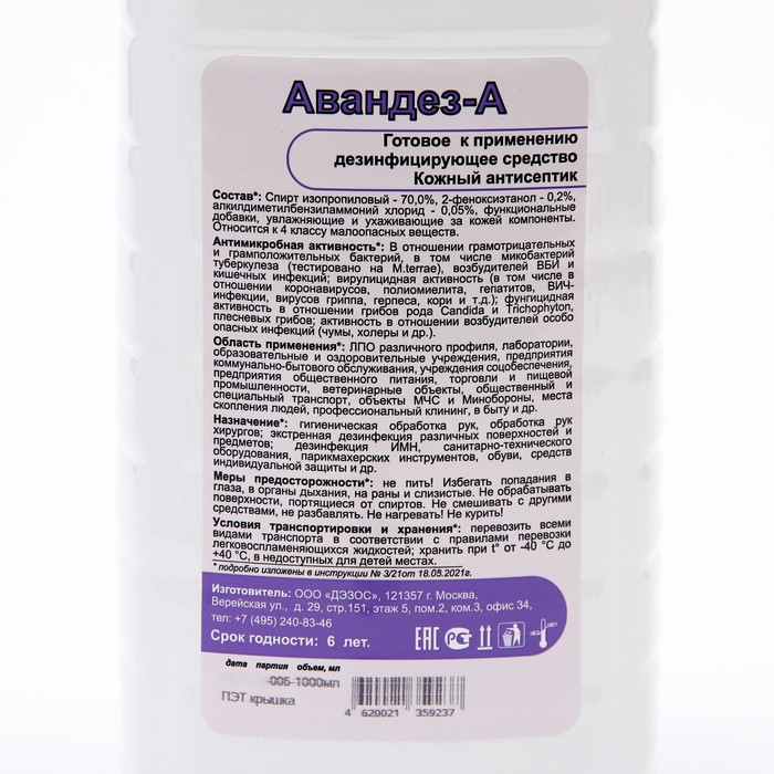Состав: спирт изопропиловый – 70,0%, 2-феноксиэтанол – 0,2%, алкилдиметилбензиламмоний хлорид – 0,05%, а также функциональные добавки, увлажняющие и ухаживающие за кожей компоненты.
