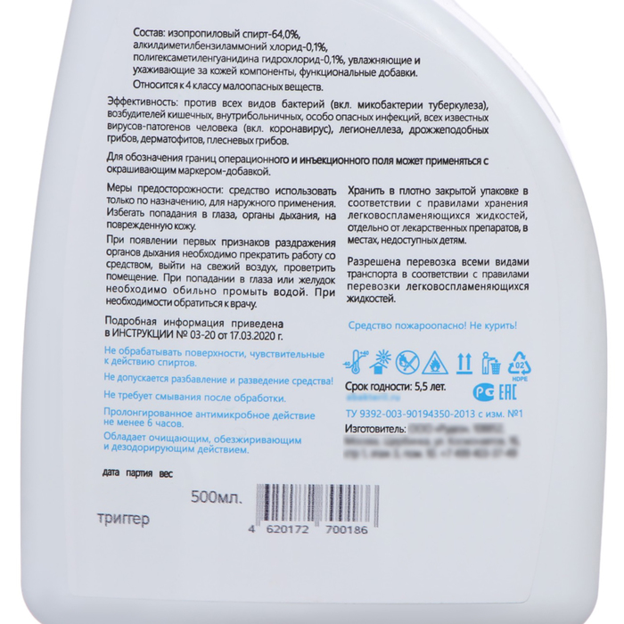 - для обработки кожи инъекционного поля - время обработки не более 30 секунд.