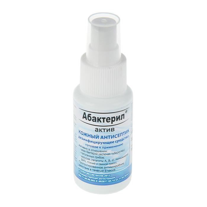Средство «Абактерил-актив» обладает антибактериальной активностью в отношении: грамположительных и грамотрицательных бактерий (включая микобактерии туберкулёза тестировано на M. terrae), вирусов (включая вирусы энтеральных и парентеральных гепатитов, полиомиелита, ВИЧ, вирусов «атипичной пневмонии» (SARS), герпеса, вирусов гриппа, в том числе гриппа H1N1, гриппа H5N1 и др.), грибов рода Кандида и Трихофитон.