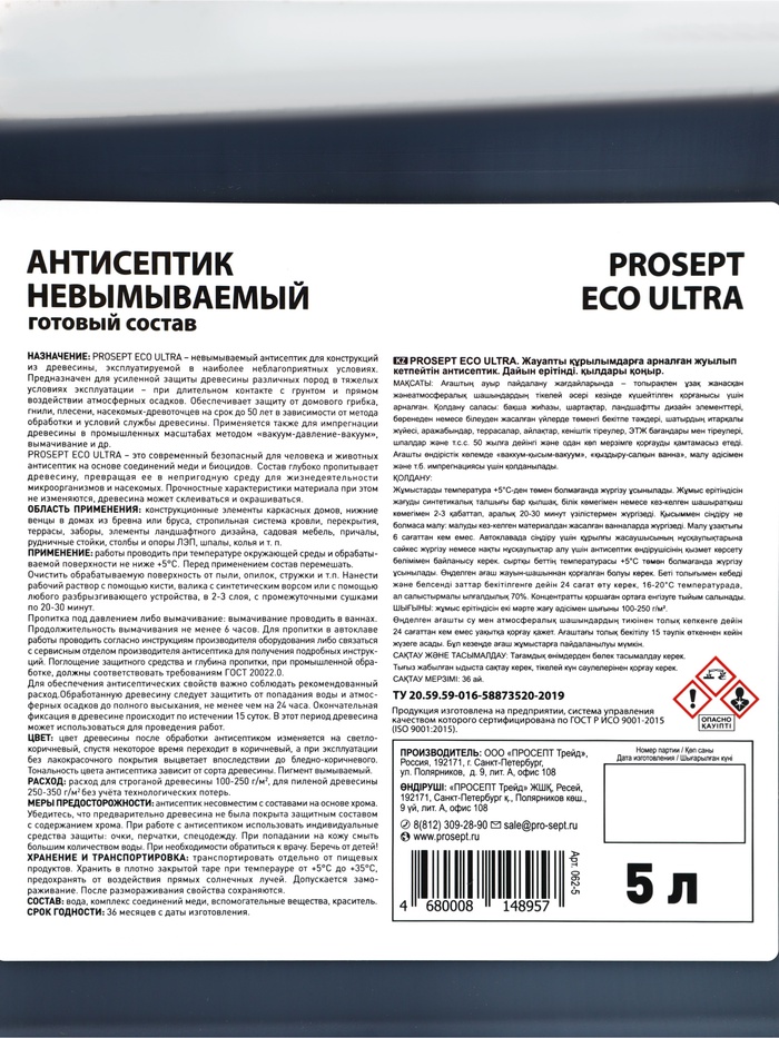 Антисептик невымываемый PROSEPT ECO ULTRA коричневый готовый состав 5 л