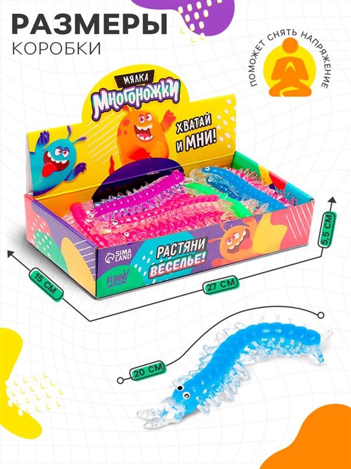 Мялка «Многоножки» — это яркая и приятная на ощупь игрушка-антистресс, которая станет отличным спутником для детей и взрослых. Мягкая и упругая, она помогает снять напряжение, успокоиться и поднять настроение. Мялка станет любимым аксессуаром в повседневной жизни.