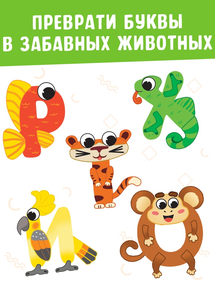 - Ребёнок будет запоминать буквы через образы: каждый символ сделан в виде животных.