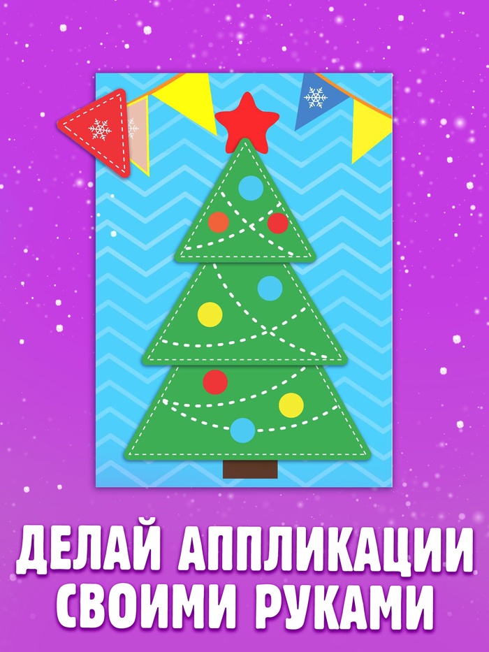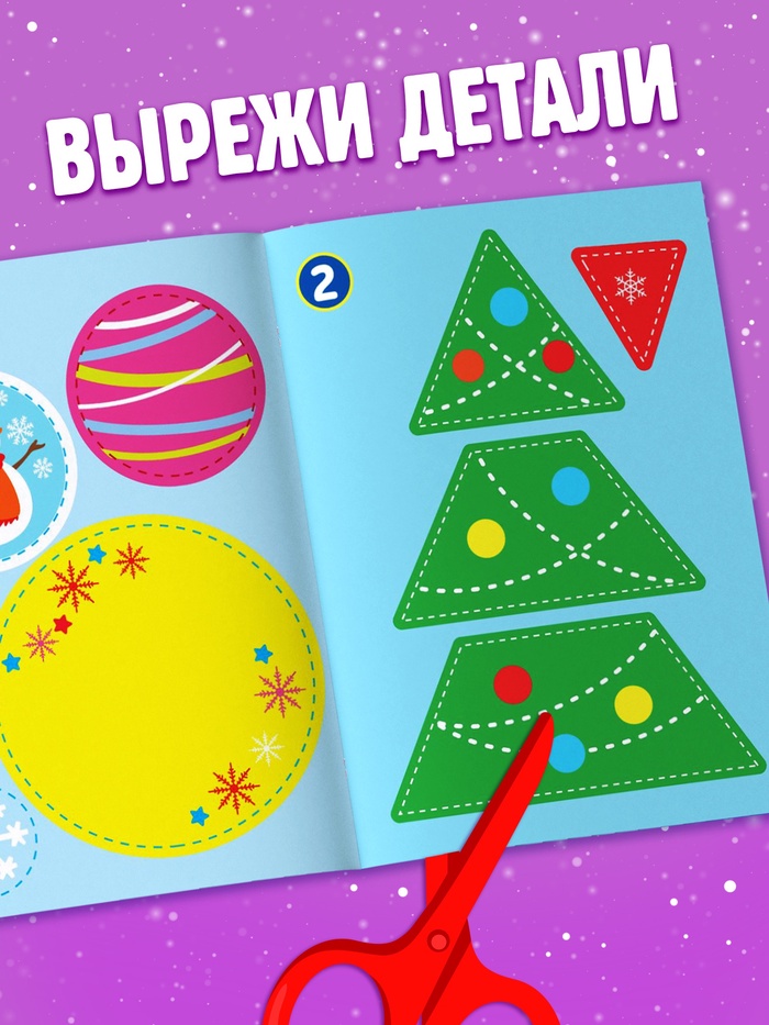 С «Новогодними аппликациями» малыш сделает праздничные открытки для семьи и друзей. Ребёнок вырежет фигуры снеговика и Деда Мороза, напишет послания и порадует близких яркой зимней карточкой.