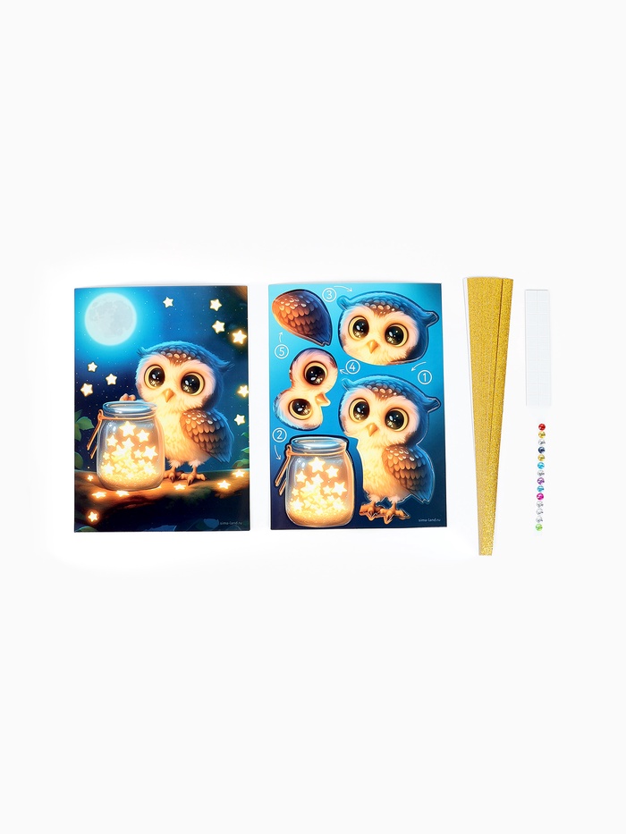 С этим набором ребёнок сможет создать яркую объёмную картинку с совушкой.