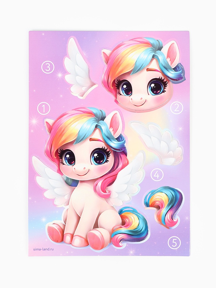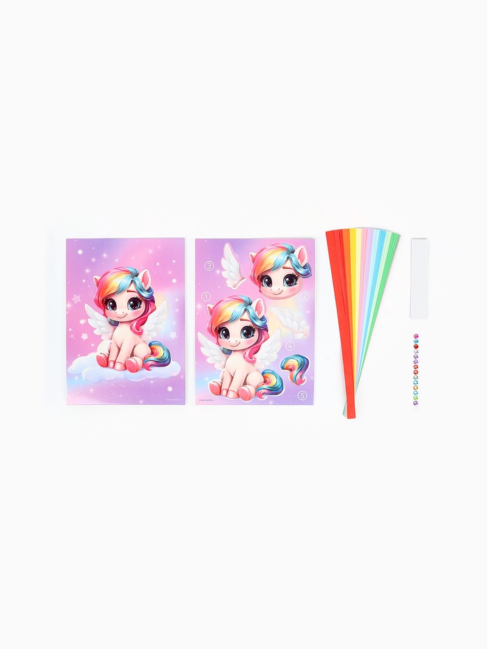 С этим набором ребёнок сможет создать яркую объёмную картинку со сказочным единорогом.