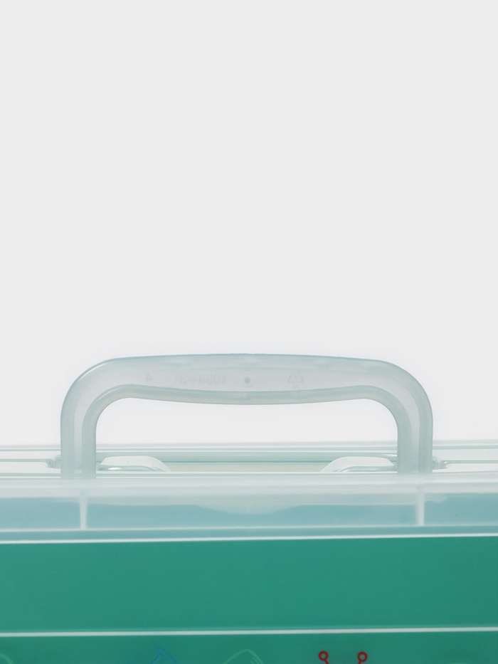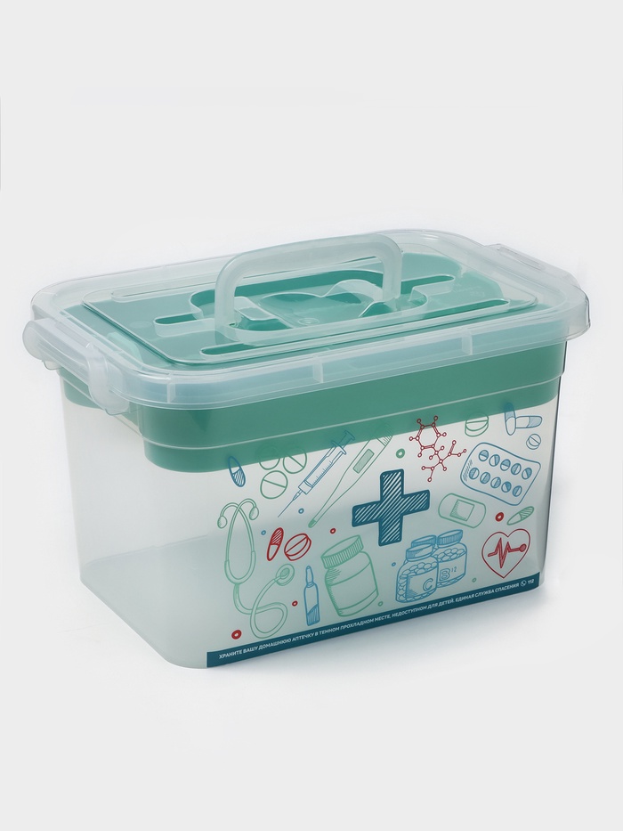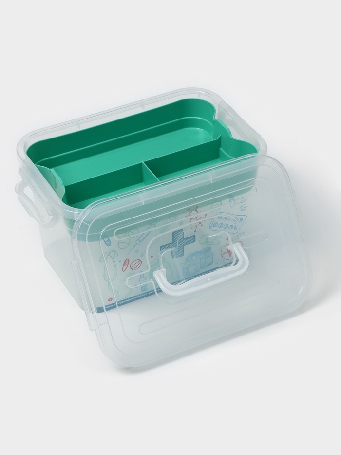 Аптечка оснащена вкладышем, в котором удобно хранить мелкие предметы. Крышка плотно закрывается и легко открывается. Благодаря этому содержимое контейнера защищено от попадания влаги и любопытных деток. Кроме того, бокс оснащён удобной ручкой для лёгкой транспортировки.