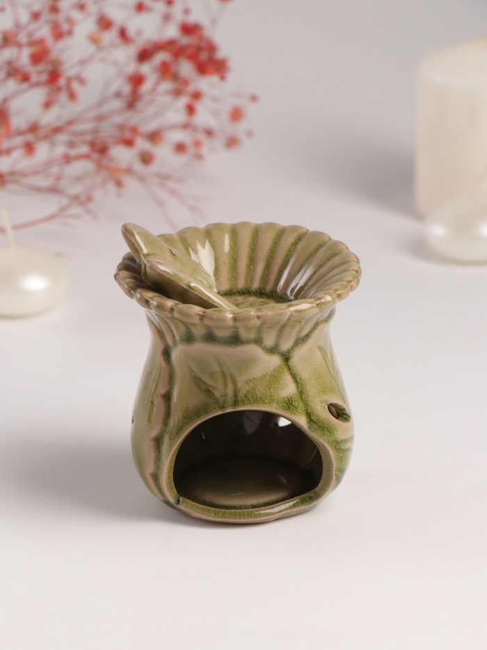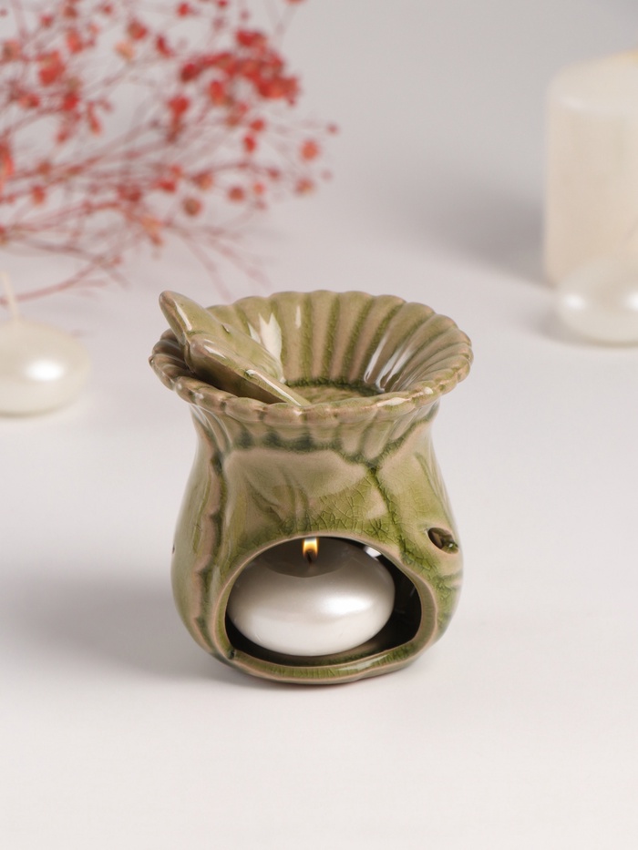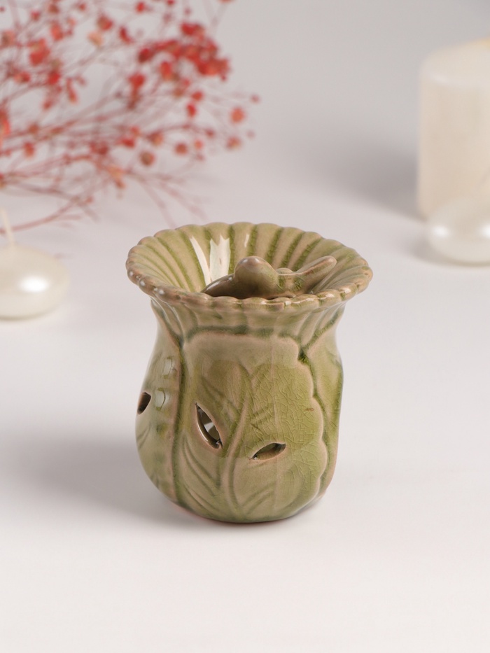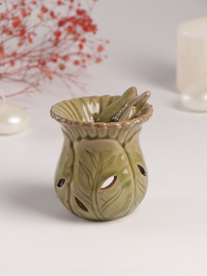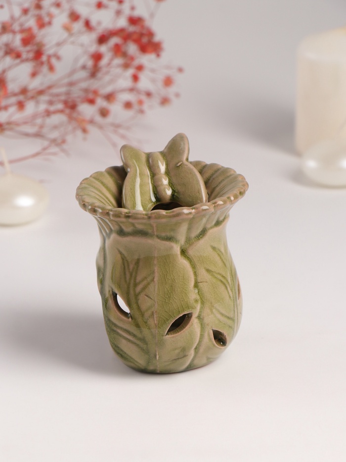 Форма вазы с тонкой проработкой деталей (7.5×8.5×9.8 см) делает этот предмет одновременно функциональным украшением интерьера. Натуральная керамика обеспечивает равномерное испарение эфирных масел, наполняя комнату выбранным ароматом.