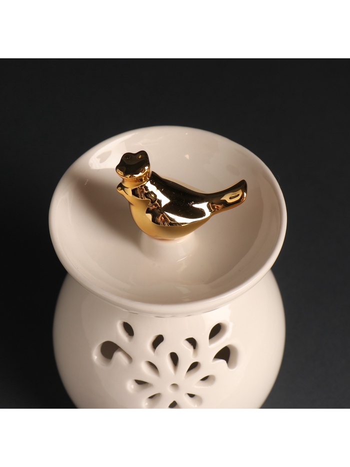 Аромалампа «Птичка в короне» поможет вам создать уютную и расслабляющую атмосферу в вашем доме. Её оригинальный дизайн и мягкий белый перламутровый цвет привнесут в ваш интерьер нотку элегантности и уюта. Керамика — это прочный и долговечный материал, который сохранит первоначальный вид аромалампы на долгие годы.