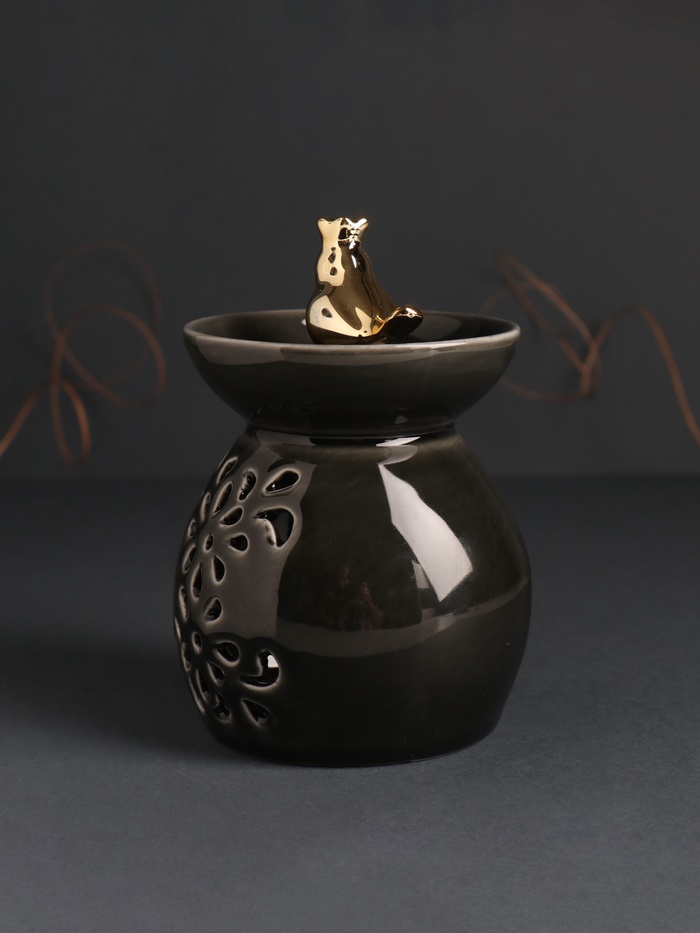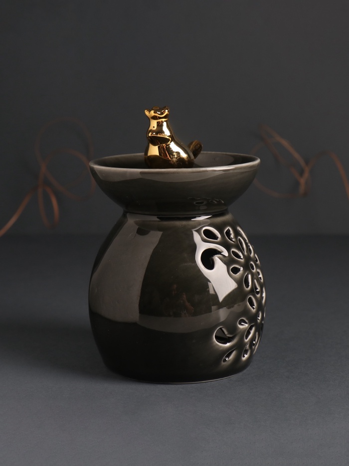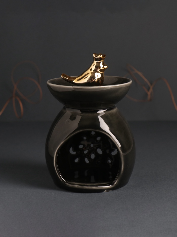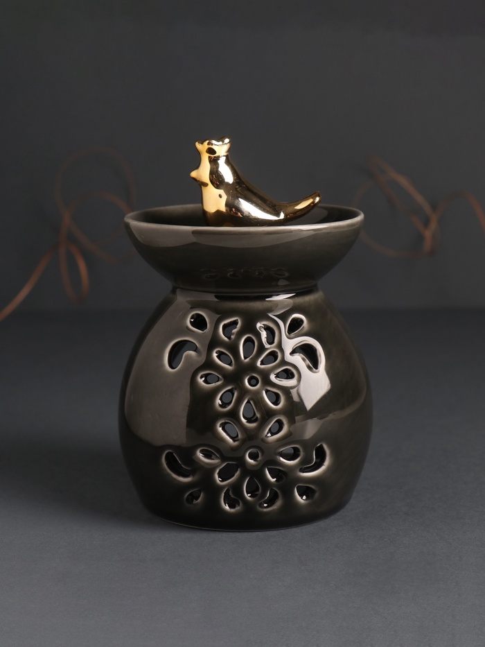 Аромалампа «Птичка в короне в чаше» — это стильный и функциональный аксессуар, который принесет в ваш дом атмосферу уюта и релаксации. Изготовленная из керамики и оформленная в чёрном перламутровом цвете, эта аромалампа не только украсит ваше пространство, но и наполнит его приятными ароматами эфирных масел.