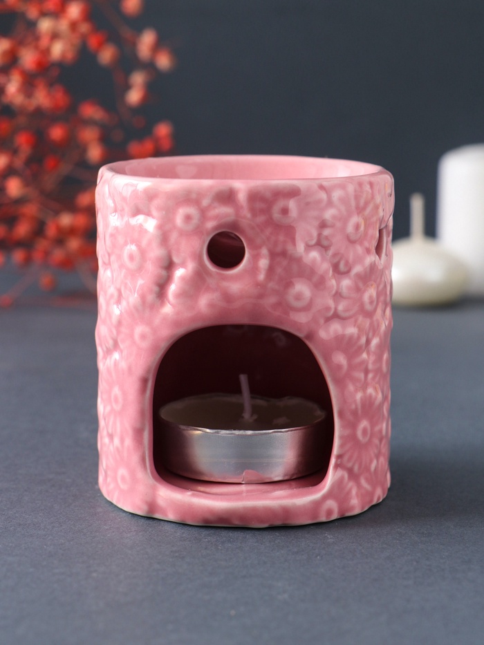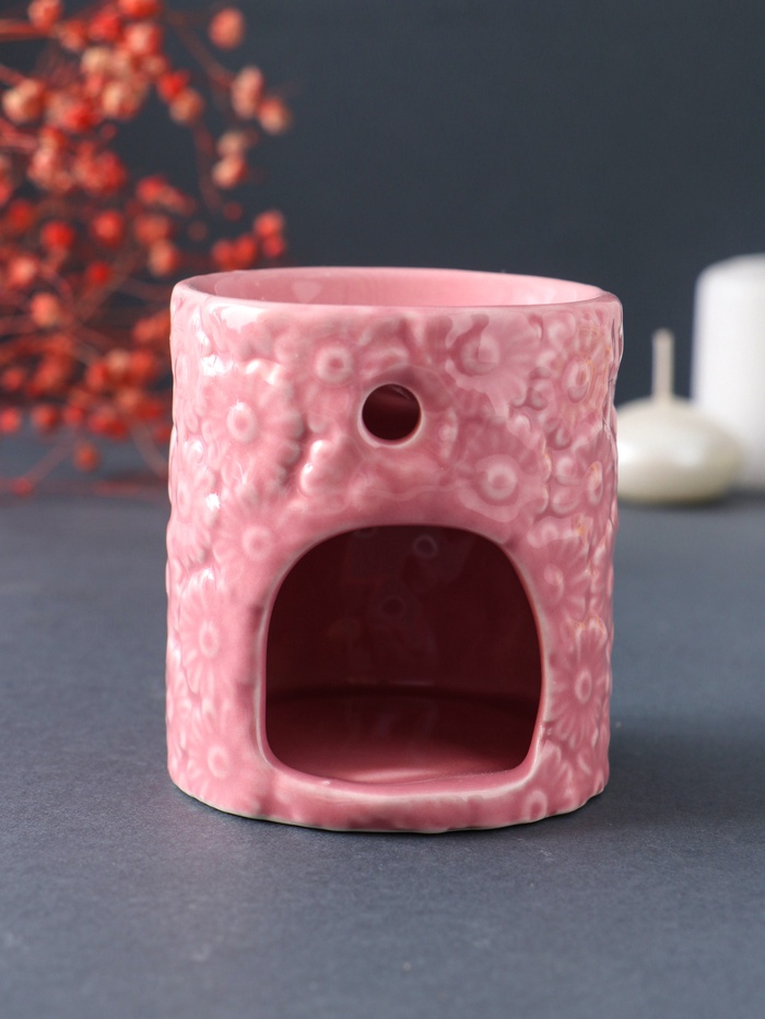 Аромалампа для эфирных масел «Ромашки», керамика, розовая, 6.7×6.7×7.5 см