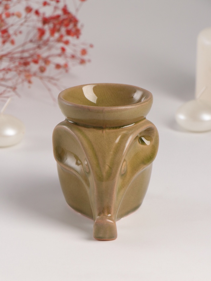 Позвольте себе погрузиться в атмосферу уюта и гармонии с этим очаровательным аксессуаром, который станет не просто элементом декора, но и источником положительных эмоций. Представленная аромалампа, выполненная в форме трогательного слонёнка, сочетает в себе функциональность и неповторимый дизайн. Её тёмно-оливковый оттенок добавляет изделию благородства и делает его универсальным для любого интерьера.