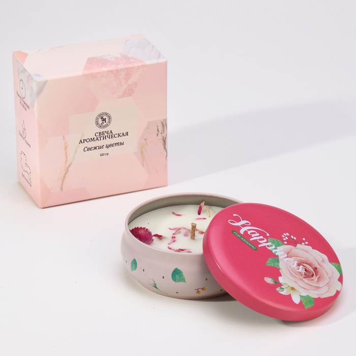 Ароматическая свеча в банке «Свежие цветы», из соевого воска с сухоцветом, 3×8.5 см, 110 г