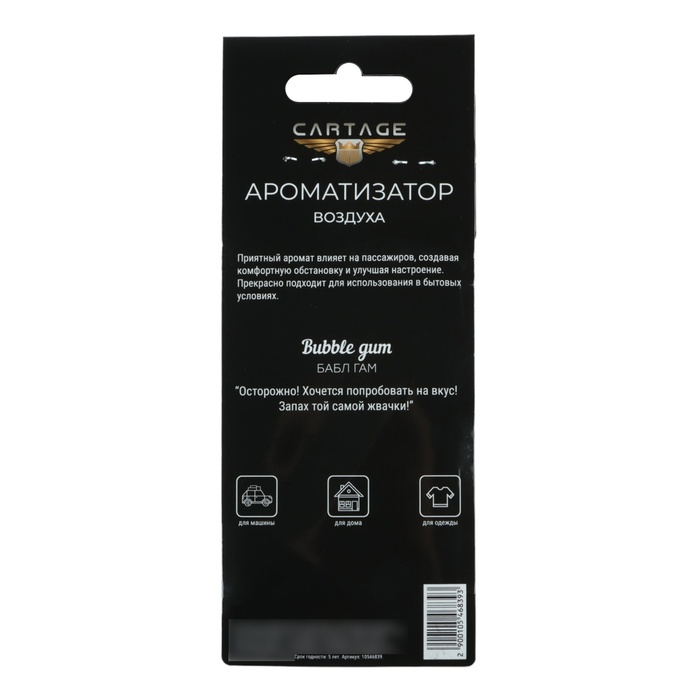 Картонный корпус ароматизатора подчеркивает его легкость и удобство в использовании. Просто повесьте его в удобном для вас месте, например, на зеркале заднего вида в автомобиле или в шкафу, и наслаждайтесь непревзойденным ароматом "Бабл Гам", который создаст атмосферу свежести и комфорта вокруг вас.