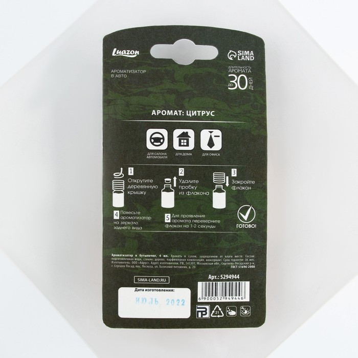 Каждый автомобильный ароматизатор предоставляется в простой, но красивой, подарочной и оригинальной упаковке. Подвесьте ароматизатор в салоне авто или в багажнике, под сиденье.
