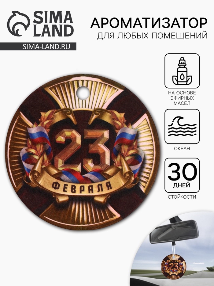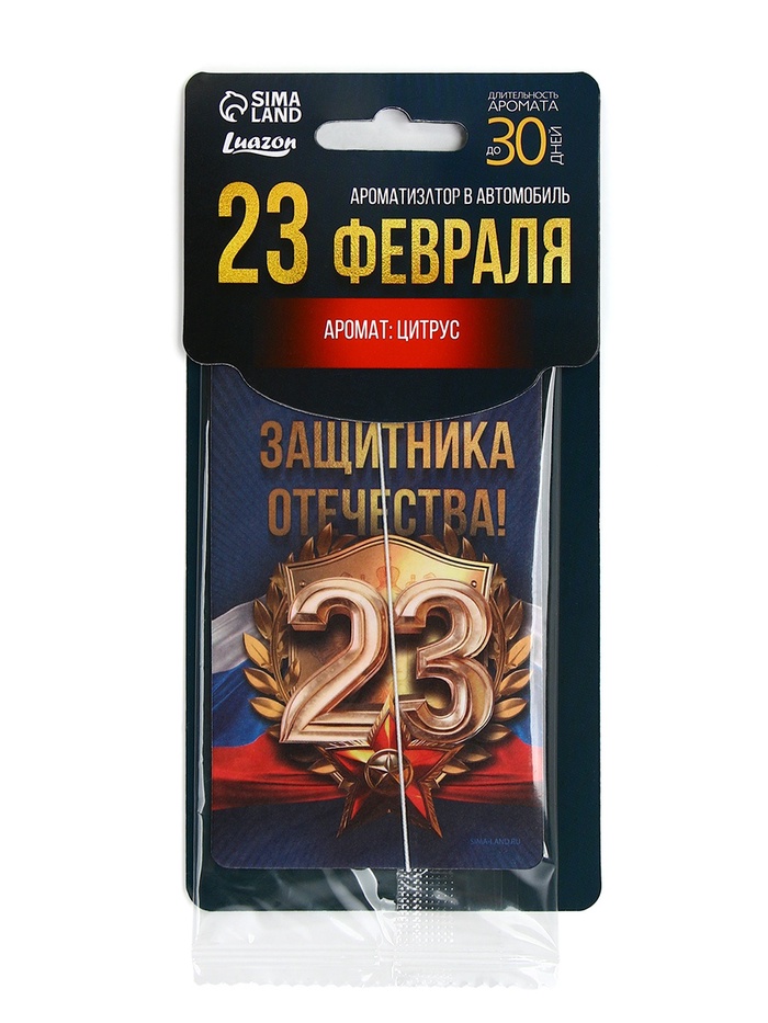 Ароматизатор в автомобиль на 23 Февраля «Человек чести, отваги и силы», аромат: цитрус