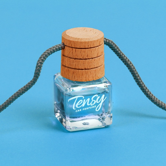 Подвесной ароматизатор TENSY в стеклянной бутылочке со стильным шнурком удобно использовать в автомобиле.