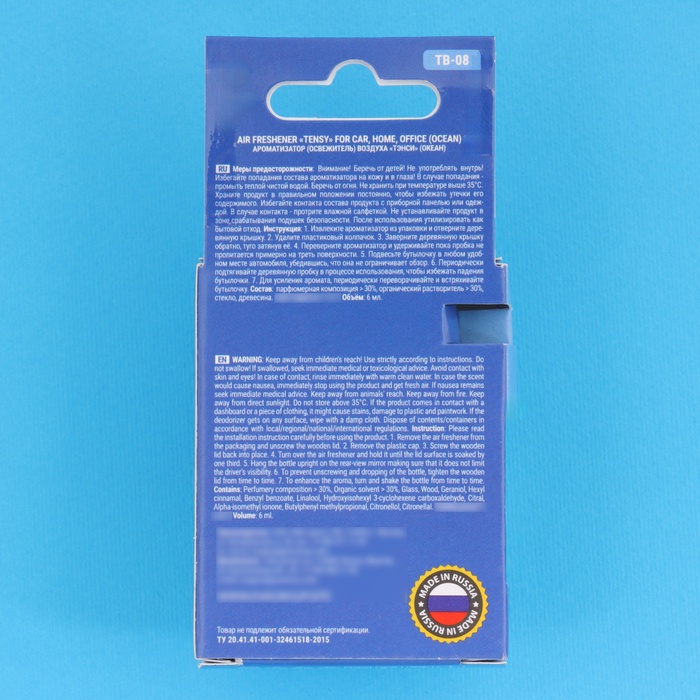 Подвесной ароматизатор TENSY в стеклянной бутылочке со стильным вощенным шнурком удобно использовать в автомобиле. Благодаря массивной деревянной крышке из натурального бука аромат плавнее и дольше передаётся в салоне, эффективно устраняя неприятные запахи. Для усиления аромата периодически переворачивайте флакон в закрытом состоянии и слегка пропитывайте крышку ароматической жидкостью. Для тех, кто хочет чувствовать рядом с собой спокойствие, уют и тихий ход времен. Кроме того, морской, океанический аромат создает ощущение чистоты и ухоженности.
