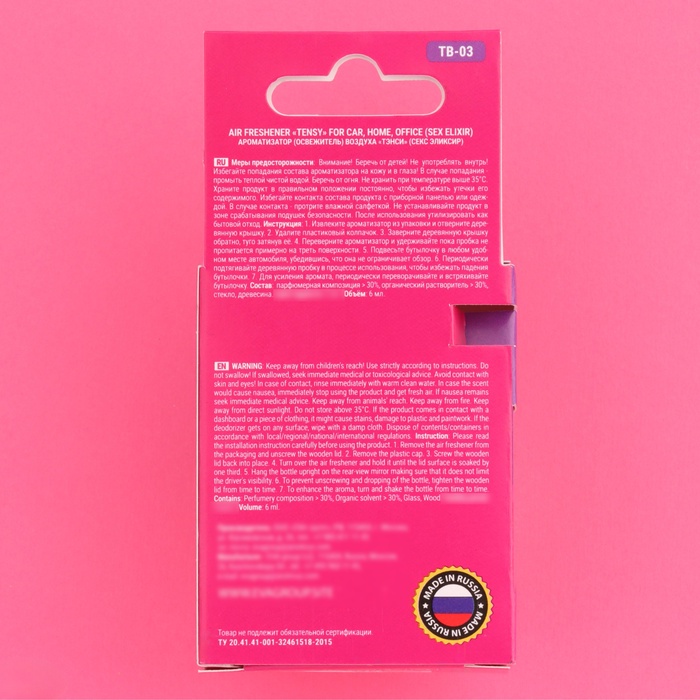 Ароматизатор в машину Tensy, секс эликсир, подвесной, бутылочка, 6 мл, ТВ-03